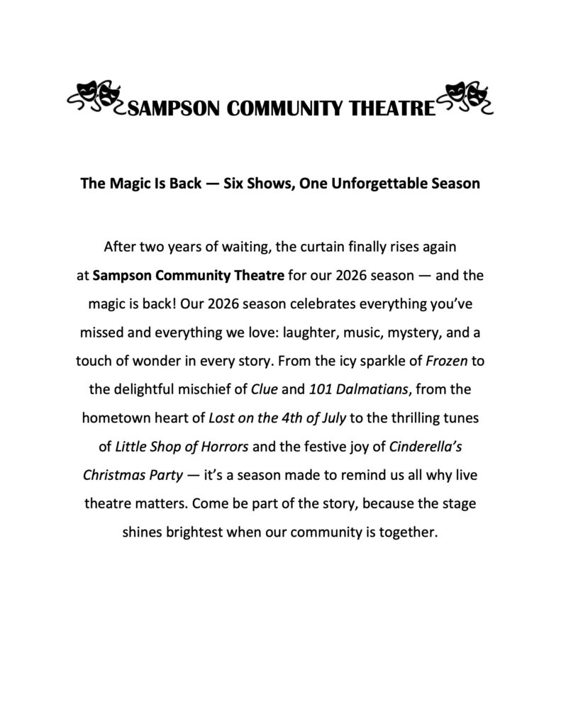 Auditions 3/19 at 7pm and 3/21 at 10am. Click link below for the Audition Form.